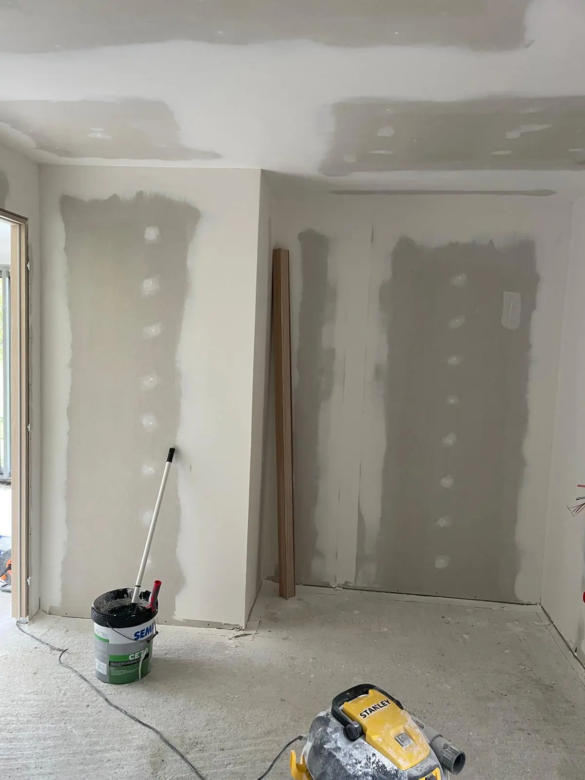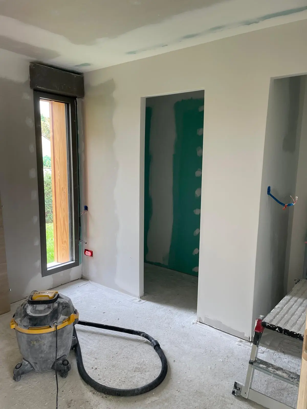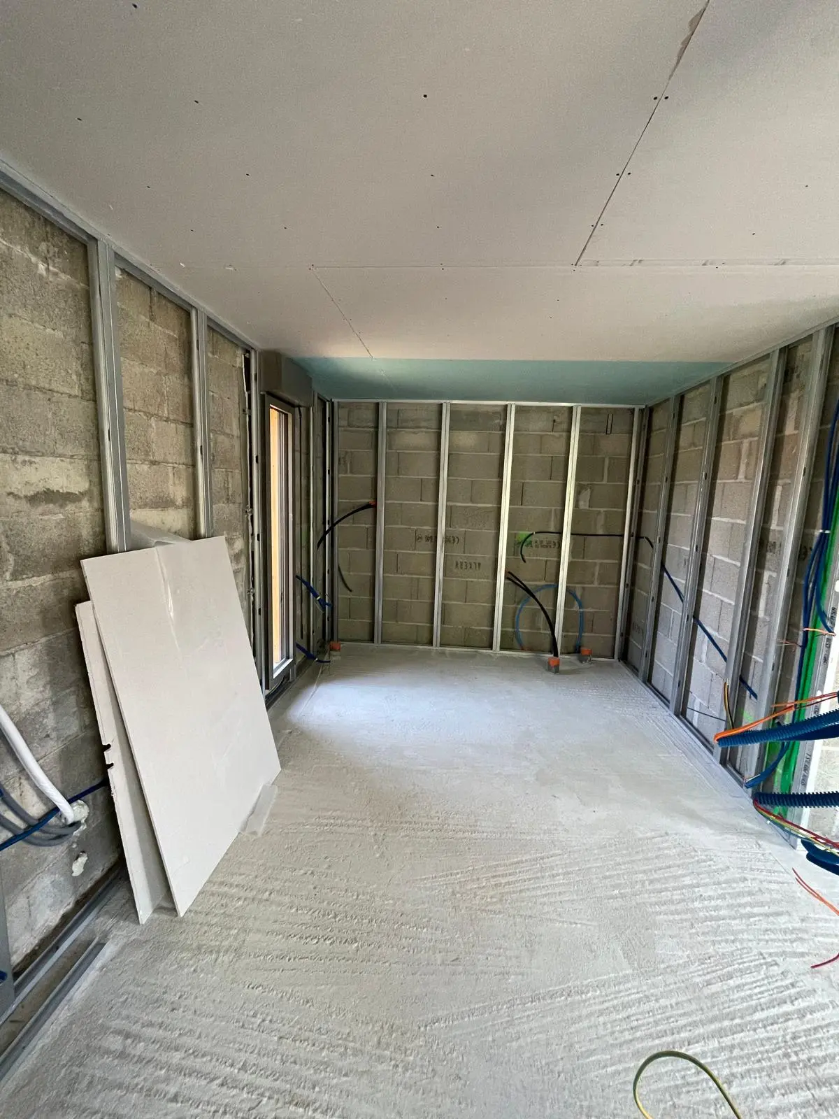 Selon les pièces du studio, des plaques de placo différentes ont été utilisées. Pour la salle de bain, j’ai utilisé des plaques hydrofuges pour l’humidité